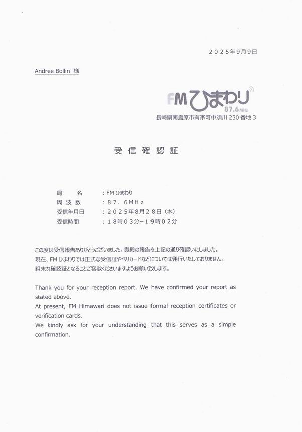 Radio Nikkei, JOZ4, 3925kHz, Nemuro